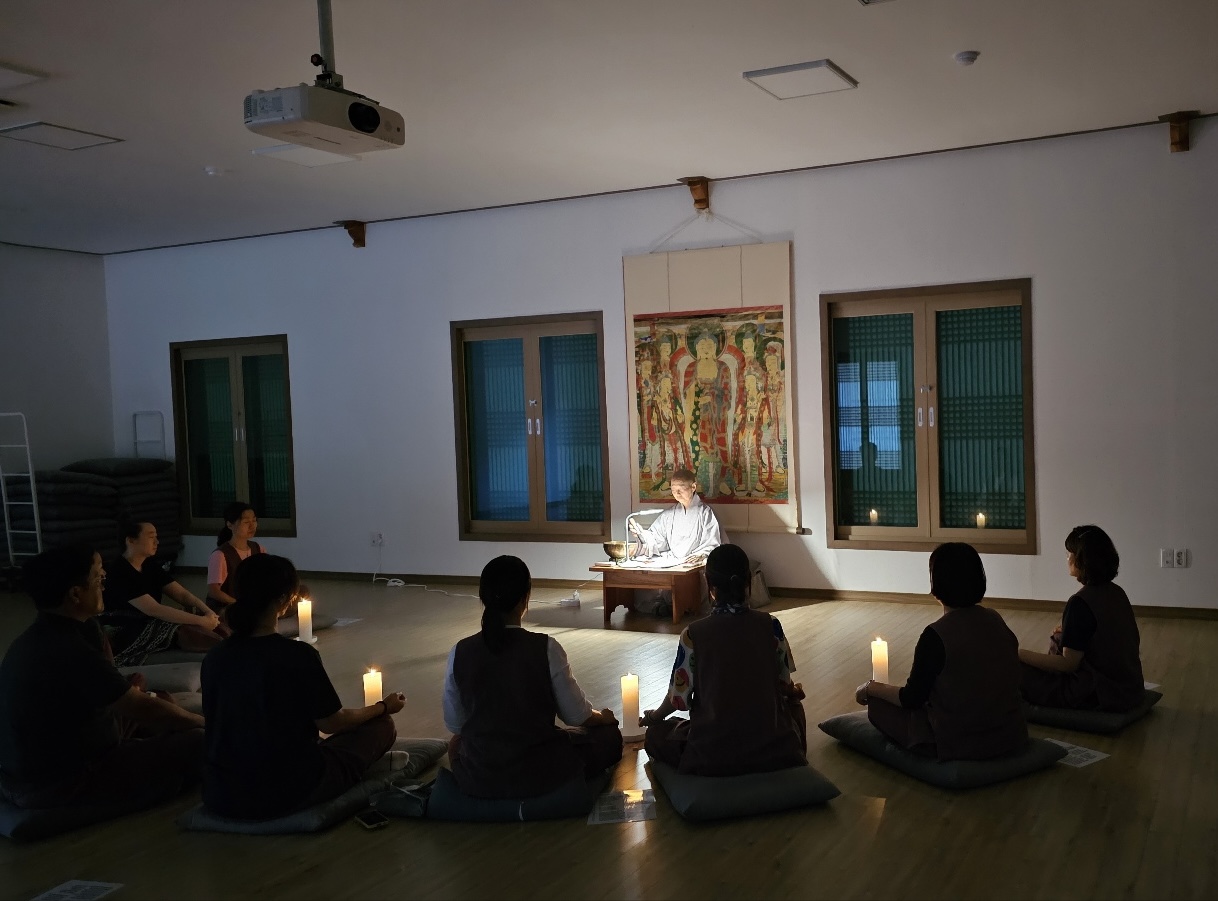 고즈녁한 저녁시간에 촛불을 밝히고, 선명상을 통해 자신과 모든 이를 사랑하는 방법을 배 우고 체험해 봅니다. 자기 자신 또는 타인과의 갈등과 대립을 해결하는 가장 지혜로운 방법은 사랑을 통해서입니다. 상쾌한 이른 아침에는 도솔제와 선운산 오솔길에서 걷기명상을 하거나, 일상에서 깨어 있기를 연습해 보는 트레킹을 합니다.