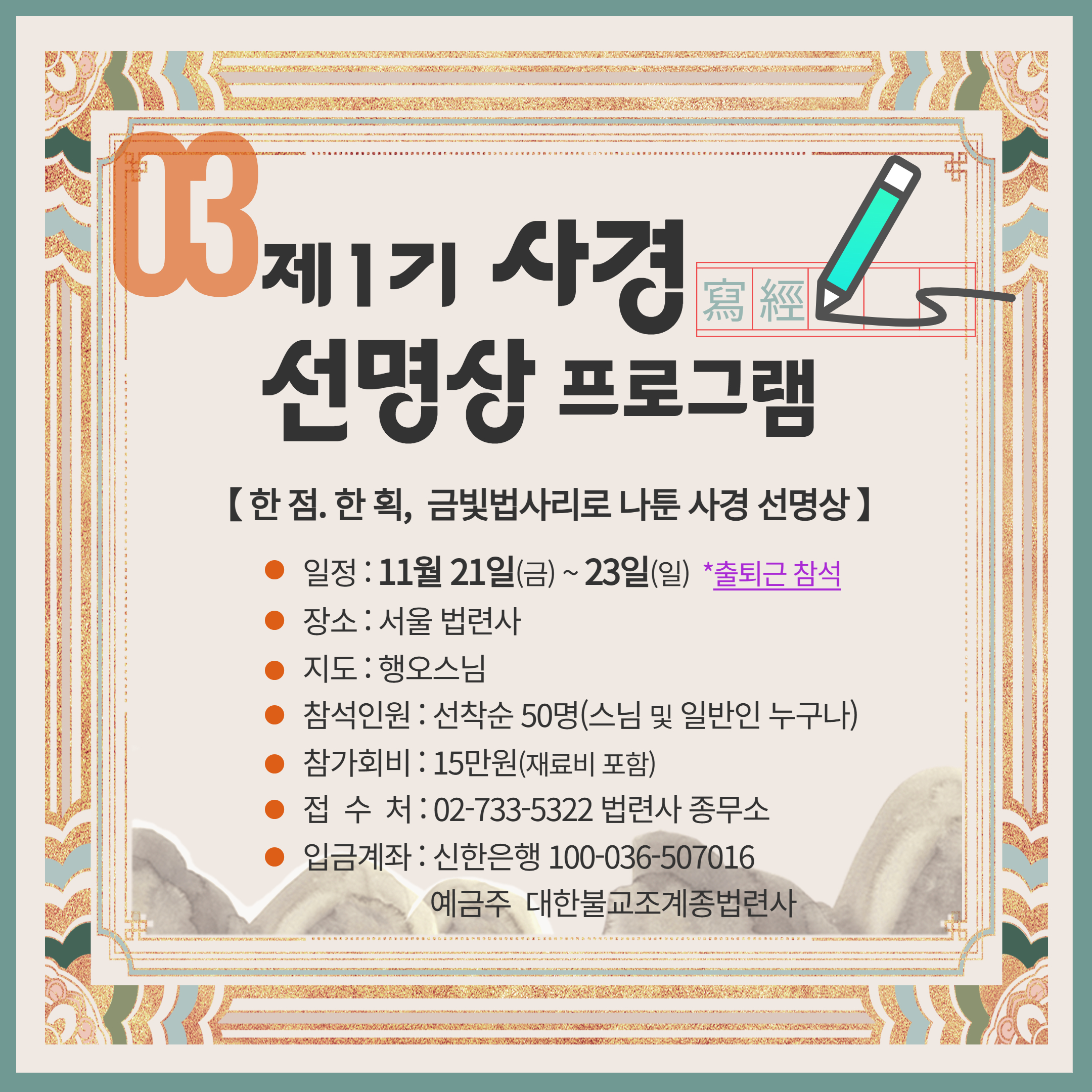 <한국불교 전통수행 선명상 프로그램> 개최 안내
